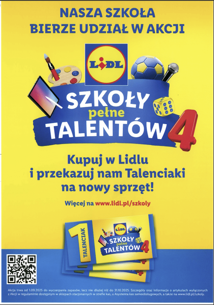 Z radością informujemy, że nasza placówka bierze udział w ogólnopolskiej akcji sklepów sieci  LIDL „Szkoły pełne talentów”. Zapraszamy wszystkich do aktywnego udziału w akcji – RAZEM możemy więcej !!!